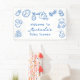 Doodle baby shower welcome banner in blue and white features a whimsical hand-drawn stork illustration and playful lettering, creating a warm and inviting focal point for your celebration of a baby boy. Set against a crisp white background, the freehand style text and sketch art bring a casual, modern charm that’s perfect for a boy baby shower. The minimalist design and soothing colour palette make this banner ideal for decorating entryways, gift tables, or photo backdrops while maintaining a cohesive aesthetic with matching doodle-themed baby shower decor.