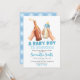 Blue Hand Drawn Minimalist A baby Boy is brewing Invitation