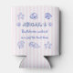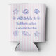 Blue hand drawn scribble sea shells bachelorette Can Cooler. This unique bachelorette party can cooler features a captivating design of blue, hand-drawn seashells, rendered in a free-spirited, scribbled style, scattered across a background with pink and white stripes. The playful aesthetic of these aquatic motifs, combined with the calming blue palette, evokes a lighthearted and beachy vibe. The Blue hand drawn scribble sea shells bachelorette Can Cooler is perfect for keeping your drinks chilled during seaside celebrations, pool parties, or any type of themed event. Adding to its charm is the incorporated text, presented in a casual, handwritten-style font, which perfectly complements the overall relaxed and jovial mood of this design.