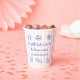 Blue hand drawn scribble sea shells bachelorette paper cups. For a bachelorette bash with a touch of seaside magic, these paper cups are an absolute must-have! The design features a collection of blue, hand-drawn sea shells, depicted in a charming, free-spirited, retro scribbled style. These playful elements are beautifully scattered across a background complemented by classic pink stripes, creating a cohesive and eye-catching aesthetic. Perfect for serving refreshing beverages, these cups will enhance the celebratory atmosphere and perfectly complement a coastal-themed bachelorette party.