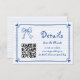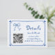 Blue and white Hand drawn scribble whimsical retro French Parisian style wedding enclosure card. Get a little Parisian charm with this hand-drawn, retro-style wedding enclosure card. It's got playful blue and white scribbles and a cute, hand-drawn bow. There's also a whimsical frame with hearts, a bow, and the word "Details." A pale blue and white stripe pattern gives it a nice touch, and a QR code lets guests easily find all the details.