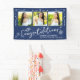 Announce to the world that your favorite grad has reached their milestone with this quirky, whimsical, simple, modern, personalized 3 photo banner. Fun, white handwritten script typography and hand drawn graduation icon sketch doodles, along with 3 photos of your choice, overlay a navy blue background. Personalize the custom text with your grad’s name, school and class year and your 3 photos. Choose from numerous sizes as well as indoor or outdoor options. Matching invites, thank you cards, address labels, hand signs, foam core welcome boards and other graduation goodies are also available in this trendy and whimsical collection. Guaranteed to preserve cherished memories of their special occasion!