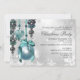 Blue, Teal & Silver Christmas Party Invitation. Elegant blue hanging ornaments with shimmer jewels and bows. Please Note: All flat images!