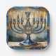 Blue Hanukkah Menorah Paper Plate