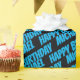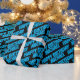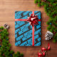 Blue Happy Birthday and Boy Name Pattern Black Wrapping Paper