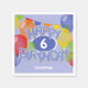 These fun and colourful birthday party cocktail napkins feature the message, "Happy Birthday" spelled out in whimsically arranged realistic blue frosted cutout cookies surrounded by multicolor balloons and bunting flags - child's age and name can be personalised - by katz_d_zynes