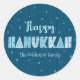 Blue Happy Hanukkah Typography Star David Name Classic Round Sticker