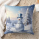 Beautiful Blue Hat Snowman Christmas Tree Holiday Throw Pillow
