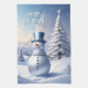 Beautiful Blue Hat Snowman Christmas Tree Holiday Kitchen Towel