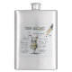 The product is a good size and came exactly as it was pictured. The lid is not attached to the flask, which could be dangerous on drunken nights... The print came out surprisingly well and looks very sharp. Would definitely recommend.