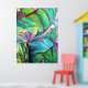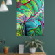 From original watercolor painting of tropical "Blue Hawaii" foliage leaves, tropical palm plant. This original brightly coloured art features colours of green, blue, purple and burgundy. Leaf and foliage art.
