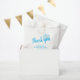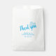 Cute blue baby shower thank you favour bag with a blue heart, thank you message, mother-to-be name and the baby shower date. This design is suitable for a baby boy baby shower, because of the blue colour. Personalise all the text on the bag.