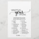 This blue heart calligraphy "what's in your phone" game is perfect for a rustic or modern baby shower. The front of the game card features "guess the right price", and the back of the card features "what's in your phone". The minimalist design for a baby boy features modern typography and a subtle pastel blue heart. Personalise the front of the card with the name of the mum-to-be and baby shower date. You can personalise the game questions by clicking the "customise" button.