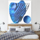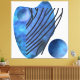 Modern design with unique shapes and line patterns in rich tones of blue.