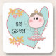 A little stick figure princess in tiara on a big blue heart background with text that reads "Big Sister" on big sister T-shirts, magnets, cards, stickers, tote bags, key chains, pillows, wall clocks, and more!