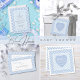 Add a personal touch to your baby shower with these custom baby blue hearts pattern invitations.