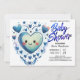 Blue Hearts Little Cutie Elegant Boy Baby Shower Invitation