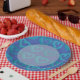 Sweet romantic design with numerous handdrawn medium blue double hearts floating all over the plate. By default the background is blue/indigo, but you can replace it with any colour of your choice. A semi transparent layer covers the main section of the plate to make the food area look clean, this can be turned off if you prefer only the pattern. The layer is good also for making any added text stand out.