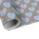 Blue hearts pattern on dark chocolate brown wrapping paper