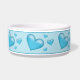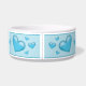 Destei's illustration of lovely blue colour hearts in different sizes. The background colour is light blue and the top and bottom have a thin blue border. There is also a personalizable text area for a name or other custom text.
