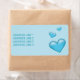 Destei's blue hearts in different sizes on a light blue background color. There is also a personalizable text area.
