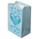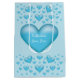 Destei's blue hearts in different sizes on a light blue background colour. There is also a personalizable text area over the big heart in the middle.