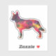 A colourful geometric pattern filled silhouette of a Blue Heeler or Australian Cattle Dog. This silhouette can also represent Heeler, Stumpy, Dingo, Canaan, Finnish Spitz, austrian pinscher, Finkie, Akita, American Dingo, Carolina Dingo, American Pariah, Native American Dog, Indian Dog, mix