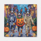 Adorable Blue Heelers dressed in playful Halloween costumes carry pumpkin buckets while trick-or-treating under the moonlit sky. This festive design highlights the breed’s speckled blue coat, sharp eyes, and energetic personality, perfectly capturing the spooky yet fun atmosphere of Halloween night. A lively celebration for dog lovers and Halloween fans alike.