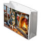 Blue Heeler Fireplace with Christmas Lights Large Gift Bag