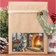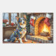 Blue Heeler Fireplace with Christmas Lights Rectangular Sticker