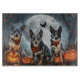 Unleash the spooky spirit with this eerie Halloween design featuring a pack of dogs under a dark, moonlit sky, surrounded by flying bats and glowing pumpkins. Perfect for those who love a touch of frightful fun with their furry friends!