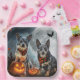 Unleash the spooky spirit with this eerie Halloween design featuring a pack of dogs under a dark, moonlit sky, surrounded by flying bats and glowing pumpkins. Perfect for those who love a touch of frightful fun with their furry friends!