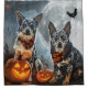 Unleash the spooky spirit with this eerie Halloween design featuring a pack of dogs under a dark, moonlit sky, surrounded by flying bats and glowing pumpkins. Perfect for those who love a touch of frightful fun with their furry friends!