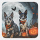 Unleash the spooky spirit with this eerie Halloween design featuring a pack of dogs under a dark, moonlit sky, surrounded by flying bats and glowing pumpkins. Perfect for those who love a touch of frightful fun with their furry friends!