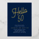 Make your luxury 50th birthday party stand out with these unique and custom designed invitations. These invites feature elegant gold foil on a classic blue background, perfect for any chic birthday celebration. Make a lasting impression on your guests with these stylish and sophisticated Golden Script Hello 50 birthday party foil invitations.