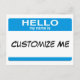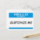 This customisable product features a blue "Hello My Name Is ..." name tag/ sticker in English.