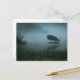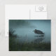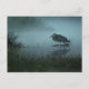 This post card features a photo of a Great Blue Heron, fishing in a pond in early morning mist.