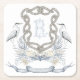 Blue Heron Rope Monogram Crest Square Paper Coaster
