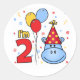 Blue Hippo Face 2nd Birthday Classic Round Sticker