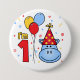 First birthday fun "I'm 1" with cool blue hippo face, large number 1 and colourful balloons. If you love jungle, safari and zoo animals you'll love this hippopotamus in a birthday hat.