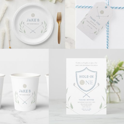 Blue Hole in One Golf 1st Birthday Invitation