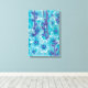 Canvas print featuring colourful floral artwork in blue shades, blooming hollyhock mallow flowers in summer garden. Tissue paper collage, pen sketch, 2019