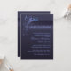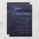 A formal and elegant invitation in deep blue tones featuring a corner abstract accent and intersecting, horizontal lines. Suitable for any formal affair and either gender.