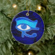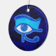Ceramic ornament with Eye Of Horus, the symbol of protection in Ancient Egypt textured design. This design features the Horus Eye in blue tones on faded Horus Eyes in the background.
