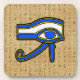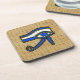 Coasters with the Ancient Egyptian symbol, the Horus eye on Hieroglyphs. This design features the Horus Eye in blue, yellow and black outlines on top of a Hieroglyphs background.