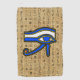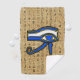 Golf towel set with the Ancient Egyptian symbol, the Horus eye on Hieroglyphs. This design features the Horus Eye in blue, yellow and black outlines on top of a Hieroglyphs background.