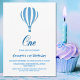 Invite your friends and loved ones with this simple but stylish blue hot air balloon 1st birthday party invitation.