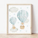 Add the finishing touches to your baby’s nursery or child’s bedroom with these gorgeous art prints! Design features blue hot air balloon, animals (bunny, bear, elephant), moon, clouds and stars.