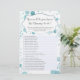This baby shower game card features a script modern font on pale blue dots background, perfect for a baby boy party.