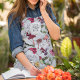 This Blue Hummingbird Garden Floral Best Mum Ever Apron features a colourful pattern of hand-drawn hummingbirds flying amidst exotic flowers against an elegant light blue background with matching light blue straps.